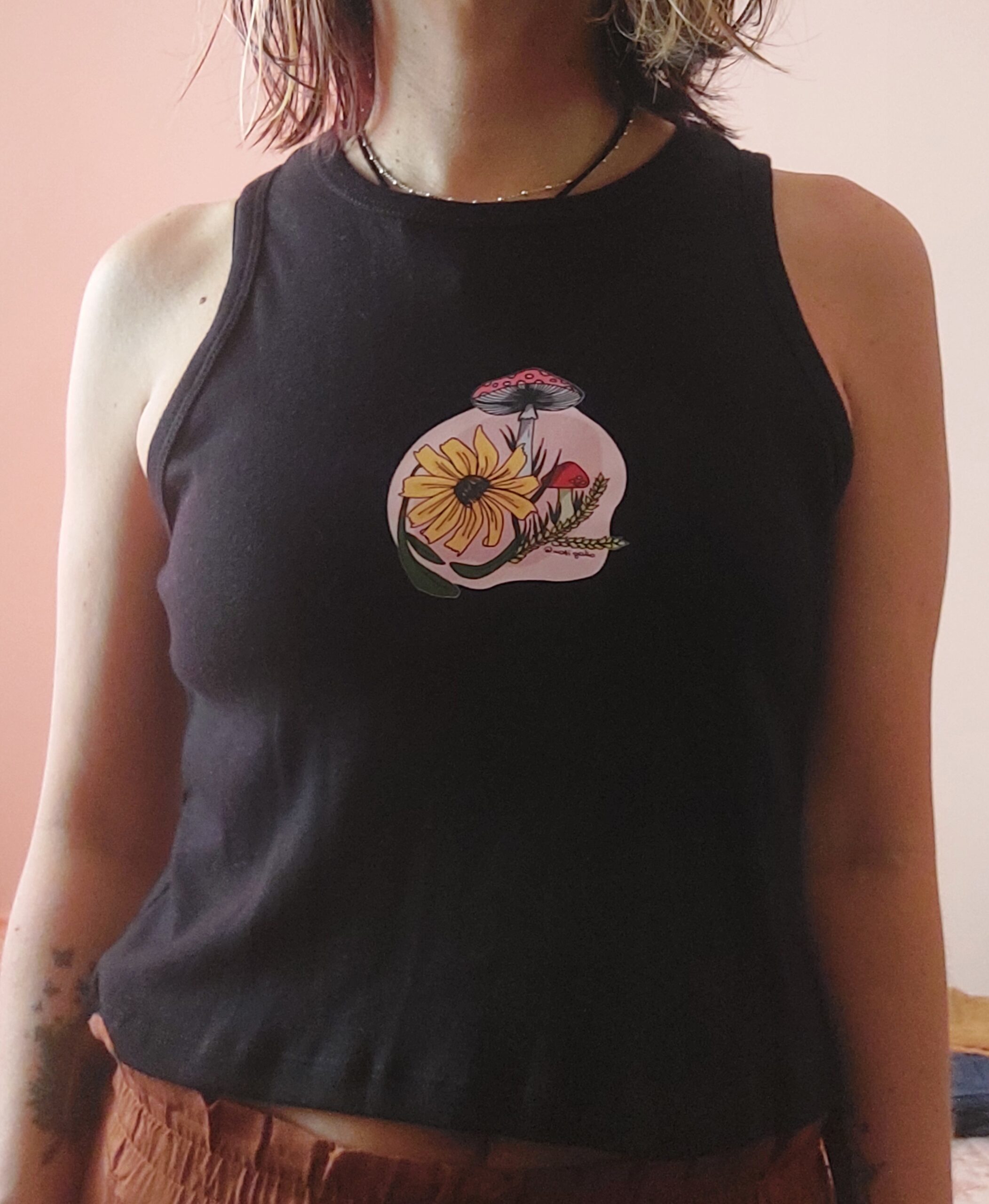 | ilustracion | Anciana, gato-amor, Hongos y mutisias |